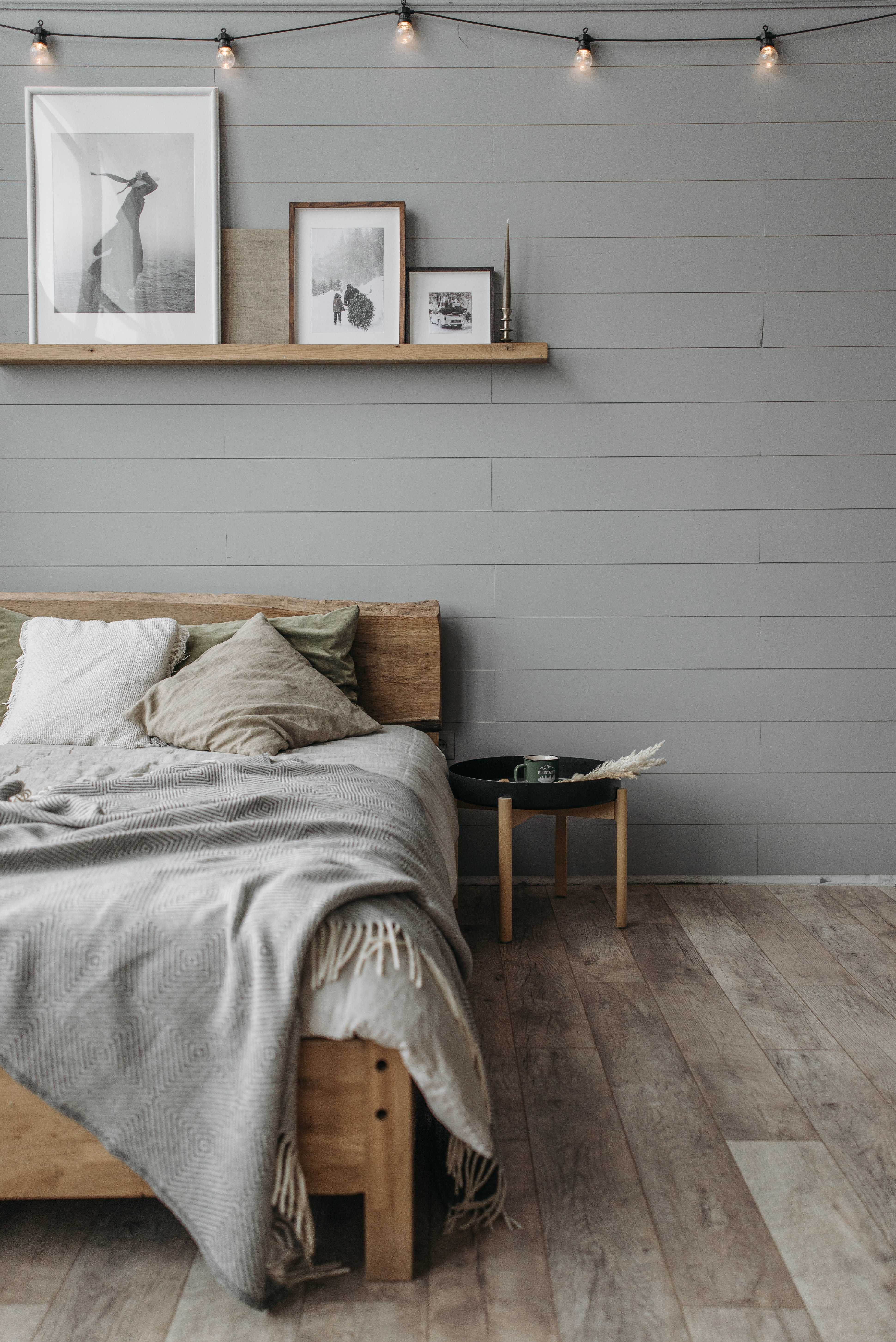 Interiors-Bedroom -Wooden Cot-Ledge-Light-Wall Decoration